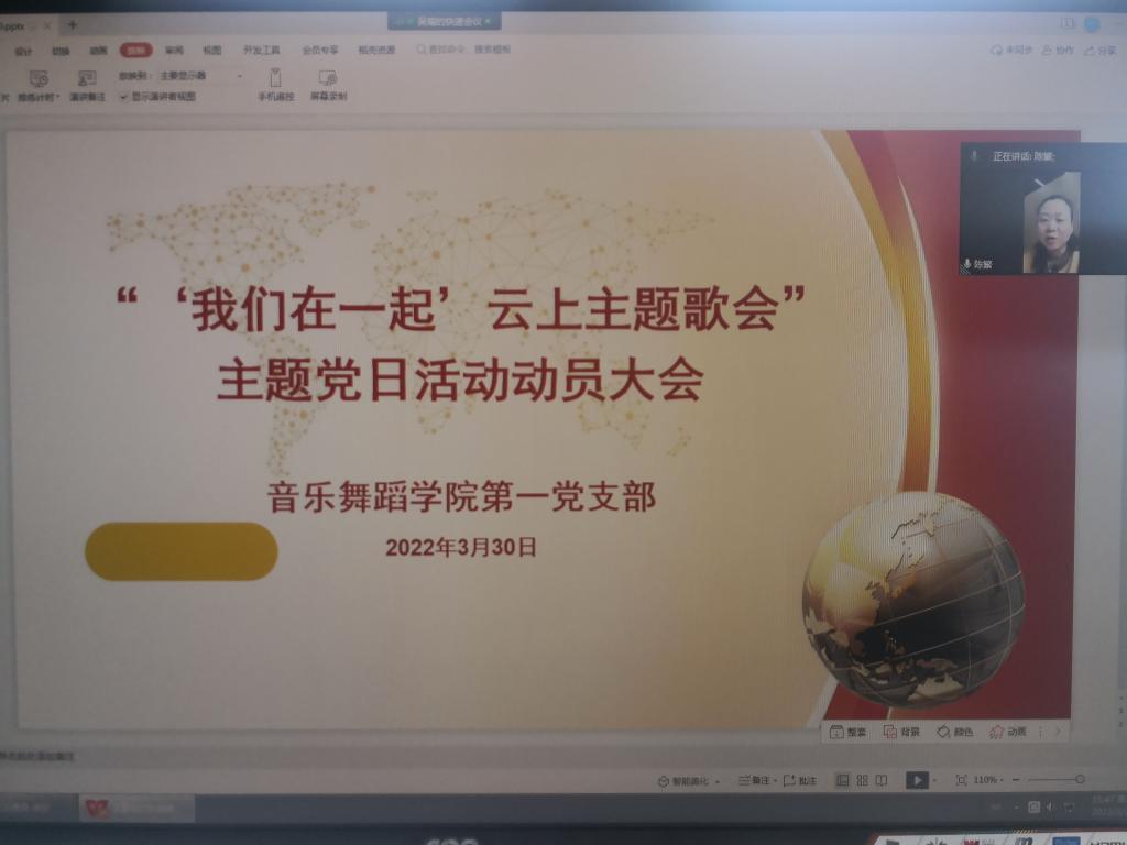 3月30日下午,best365官网入口注册第一党支部全体党员在线上开展了主题党日活动,会议主题是“‘我们在一起’”云上主题歌会活动研讨。会议由支部组织委员吴瑜老师主持,支部全体党员和公司党总支书记陈繁参会。