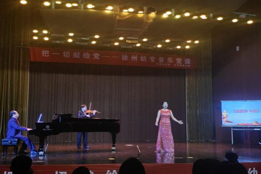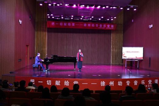 《把一切献给党》主题党课由第一党支部书记孙玉柱教授主讲,党课共分为“峥嵘岁月、光辉历程、盛世中华”三个篇章,每个篇章包含三首具有代表性的红色音乐。孙教授以红色音乐创作的背景、产生的历史意义的讲述为切入点,党员老师们现场演绎,刘雅宁博士独唱《黄河颂》、徐丽娅老师独唱《再唱山歌给党听》、孙玉柱教授独唱《把一切献给党》、宣传委员李芸芸老师独唱《我爱你,中国》、组织委员吴瑜老师、声乐教研室主任王阳老师、宣传委员李芸芸老师三人合唱《春风十万里》。整个党课过程中大家认真听,跟着课堂中的红色歌曲吟唱,气氛热烈,掌声阵阵。党课在全场高唱《没有共产党就没有新中国》的歌声中圆满结束。