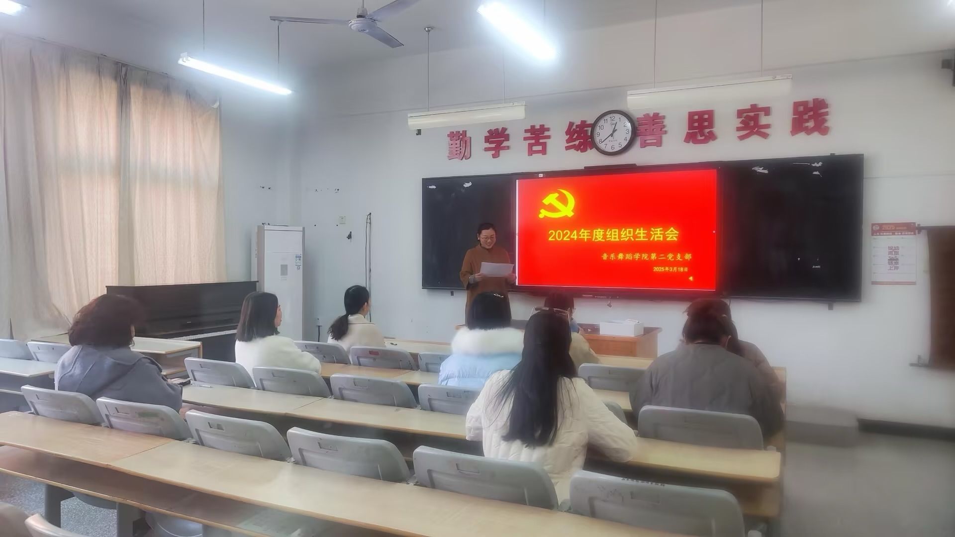 为深入学习贯彻习近平新时代中国特色社会主义思想和党的二十大精神,进一步加强党员教师队伍建设,2025年3月18日中午,best365官网入口注册第二党支部在碧螺校区D101召开组织生活会。会议由党支部书记马娟主持,全体党员教师参会。