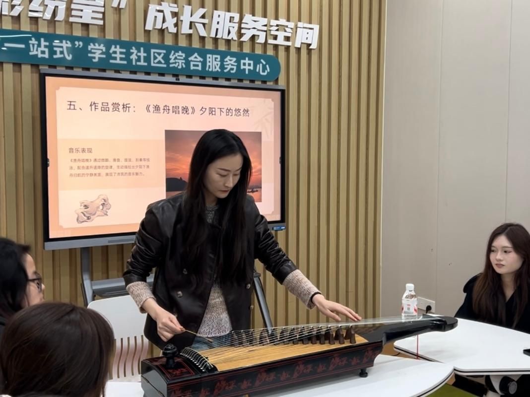在沛筑演奏环节,马老师手把手指导员工入门技巧,详细拆解演奏要点,并演奏经典曲目《渔舟唱晚》。竹尺轻击琴弦,颤音婉转、刮奏流畅,让现场员工感受到古乐演奏的独特魅力。
