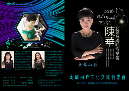 新年前夕,我系声乐教师陈华副教授“芳华如歌”个人独唱音乐会在台中教育大学音乐系音乐厅拉开帷幕,台中教育大学音乐系全体师生、东海大学等兄弟院校艺术系师生及公司赴台研修的14位老师出席音乐会。