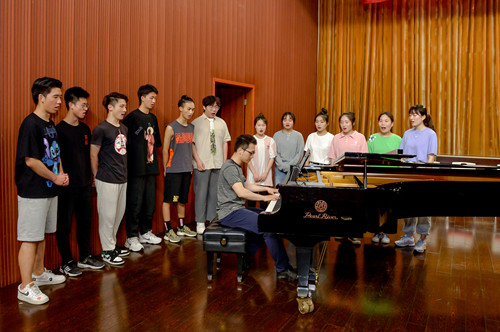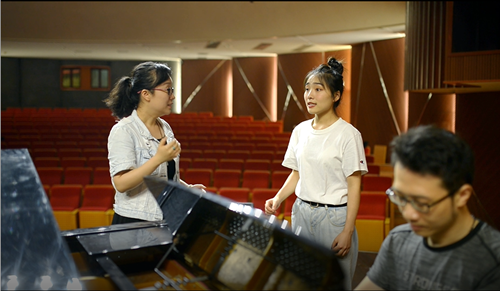 周珂含、党杰老师指导员工演唱主题曲《在一起》