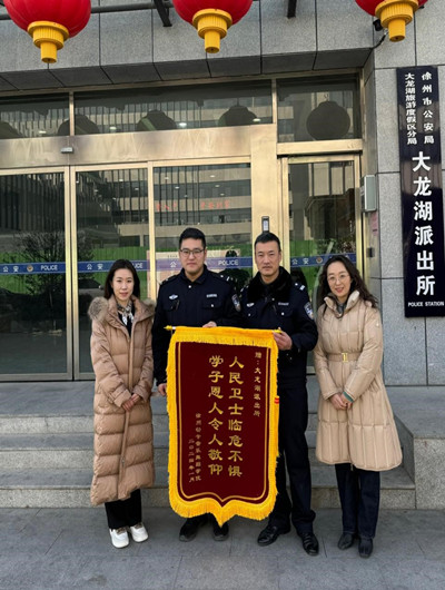 1月25日,公司党总支副书记李艳萍、辅导员陈兆琦来到大龙湖派出所、大龙湖分局巡特警大队,将印有“人民卫士临危不惧,学子恩人令人敬仰”字样的锦旗送到了李经纬、丁永胜两位警官手中,以表达人民警察在关键时刻对员工实施援助的深深感谢和崇高敬意。