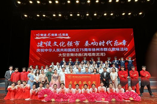 6月14日晚“感党恩 听党话 跟党走——建设文化强市 奏响时代乐章”——庆祝中华人民共和国成立七十五周年徐州市群众歌咏活动在徐州音乐厅举行,本次活动由徐州市文化广电和旅游局主办,公司协办,师生100余人联手徐州马可艺术团,共同为现场观众带来了一场精彩的视听盛宴。党委委员、副董事长刘芳铭带领音乐舞蹈公司党政班子成员参加当晚活动。